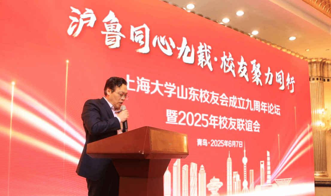 成旦红书记在讲话中向广大山东校友致以亲切问候,他感谢杨克明、杨向栋两任会长及理事会成员的多年付出,并对山东校友会九年来的工作给予了高度评价。他带领校友重温了母校的红色校史,细数了山东校友多年来与母校的深厚情谊。他寄语广大在鲁“上大人”饮水思源、锐意进取、不懈奋斗,在校友会的团结带领下,为母校教育事业、齐鲁地方经济发展与国家现代化强国建设“出力、出智、出彩”。